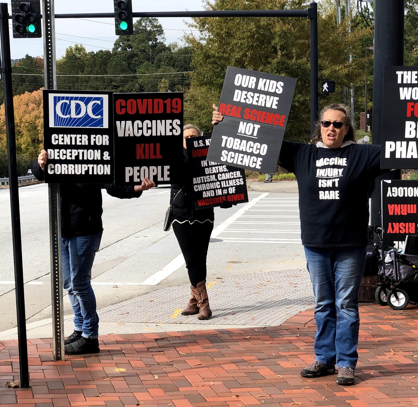 holding signs on corner